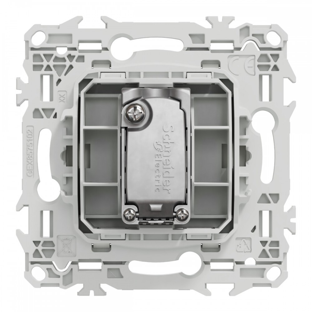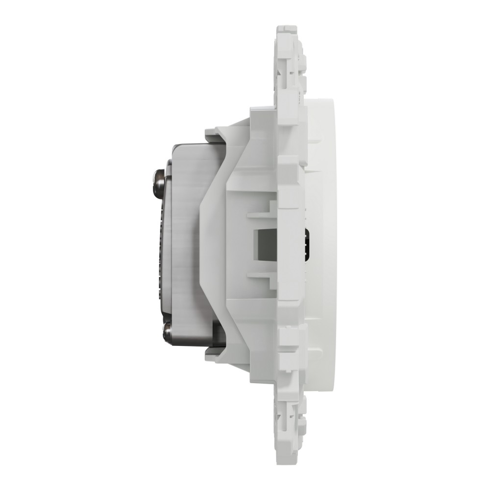 La pose est rapide grâce au support rigide à vis, compatible avec toutes les boîtes d’encastrement. Pour la rénovation, des griffes clipsables (non fournies) peuvent être ajoutées, permettant une installation encore plus flexible. Cette conception garantit une fixation solide et durable dans le temps.
