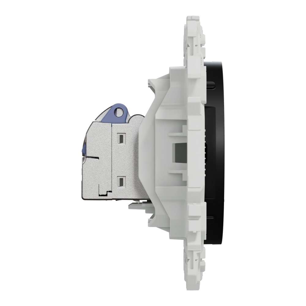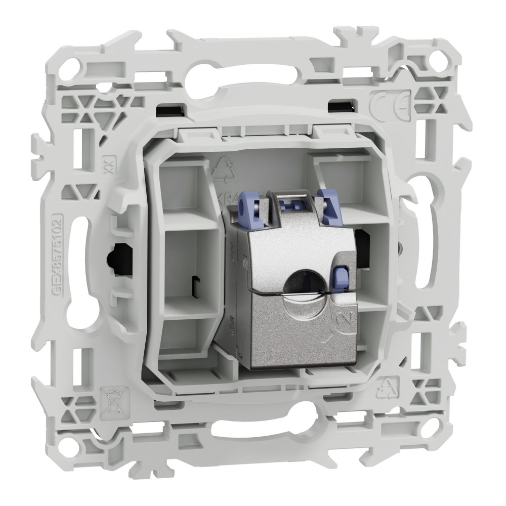 Le connecteur S-One monobloc permet un câblage rapide, un ajustement précis et un démontage sans outil, garantissant une intervention simple même en rénovation. La prise se fixe solidement sur tout type de boîte d’encastrement grâce au support rigide à vis. Pour les rénovations, des griffes clipsables (non fournies) peuvent être ajoutées afin d’assurer une tenue parfaite, même sur un support ancien ou irrégulier.