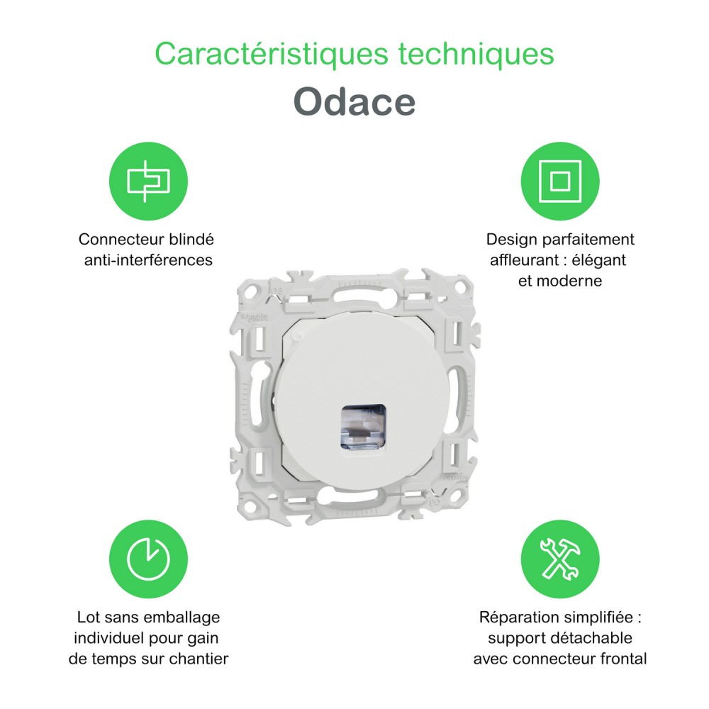 Prise RJ45 Cat6 STP Grade 2TV min à Grade 3TV Odace 2025 | Schneider Electric