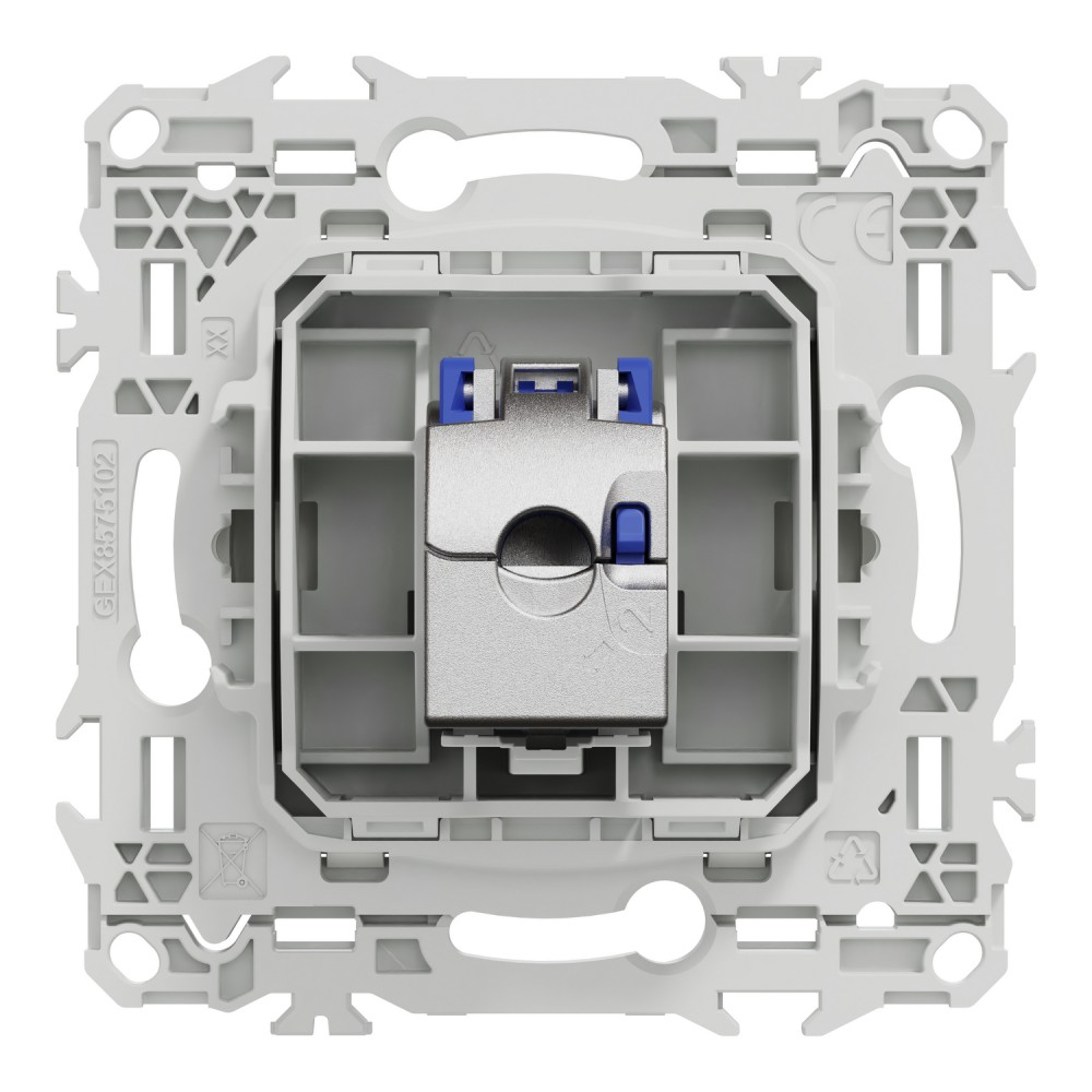 - Support rigide à vis, avec option de griffes clipsables, pour une fixation rapide et fiable sur tout type de boîte d’encastrement.