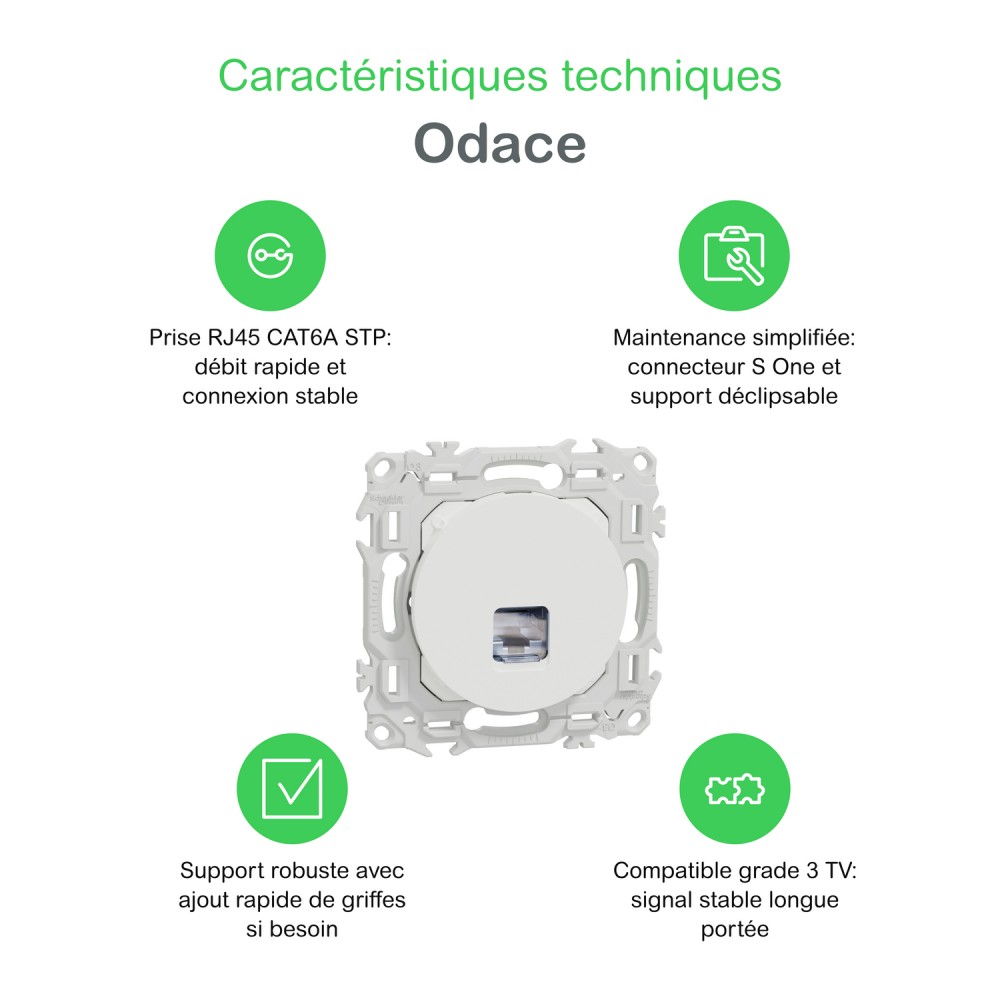 Prise RJ45 - Cat6A STP grade 3TV Odace 2025 | SCHNEIDER ELECTRIC
