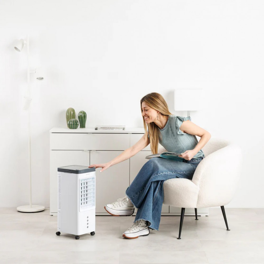 Sa mobilité totale permet de le déplacer d'une pièce à l'autre sans effort grâce à ses roulettes. Son installation est inexistante : il suffit de remplir le réservoir et de le brancher pour profiter d'un rafraîchissement immédiat.