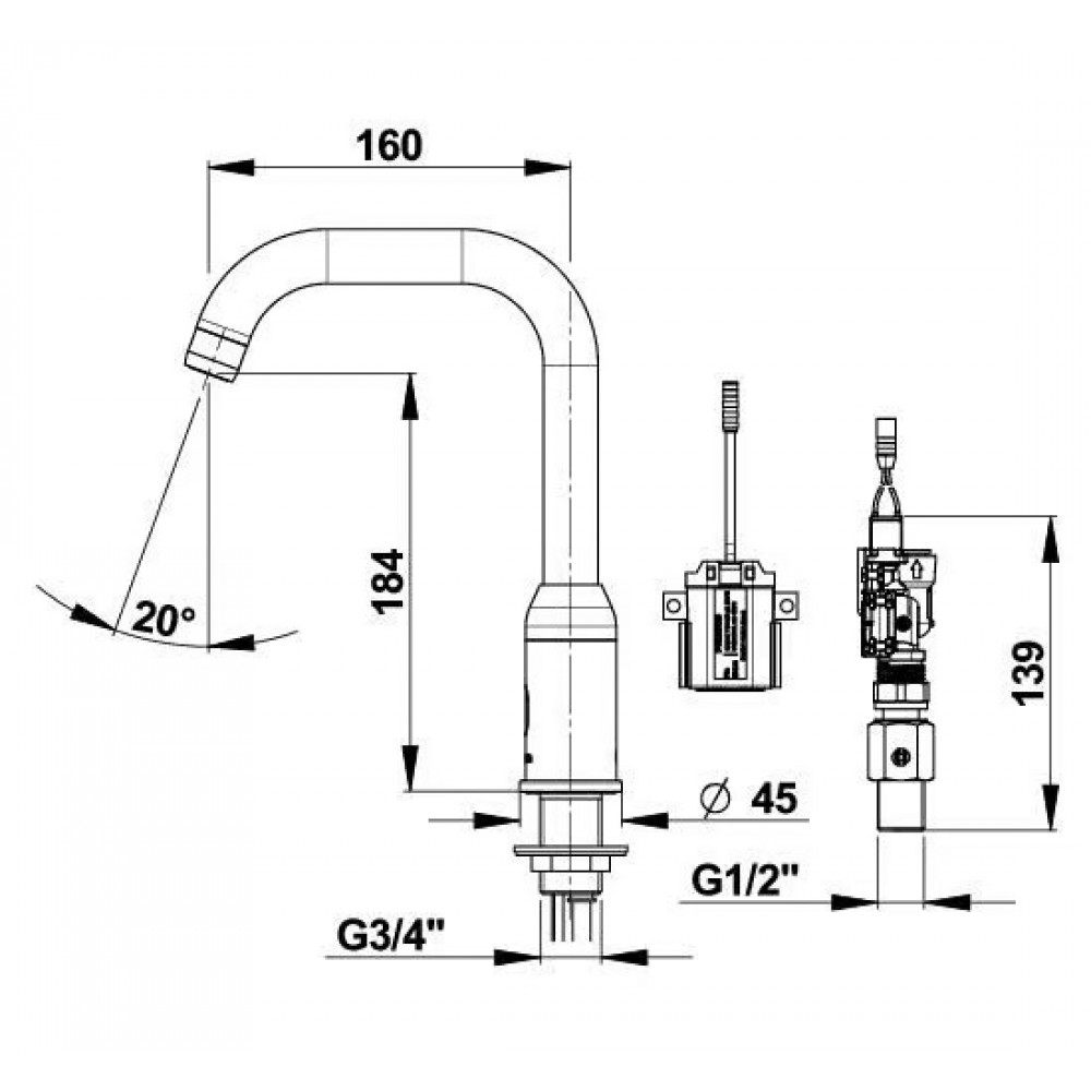 | Saillie (robinet et mitigeur) | 160 mm |