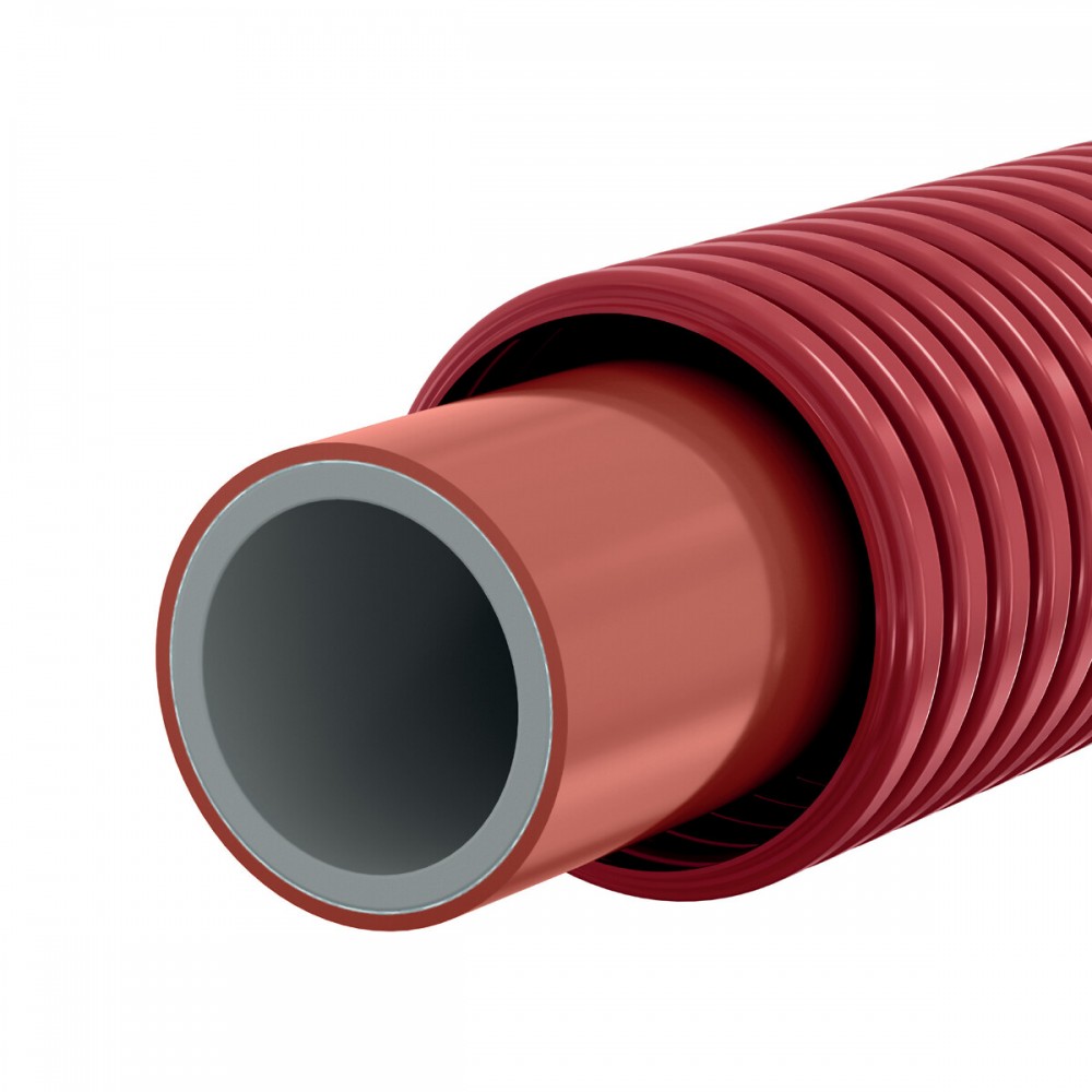 La couronne de tube PER-T Betapert gainé COMAP de 50 mètres, en couleur rouge pour l’identification des réseaux d’eau chaude, est conçue pour les installations sanitaires, de chauffage, de refroidissement ainsi que pour les réseaux d’eaux pluviales, avec une plage de fonctionnement comprise entre +5°C et +70°C.
