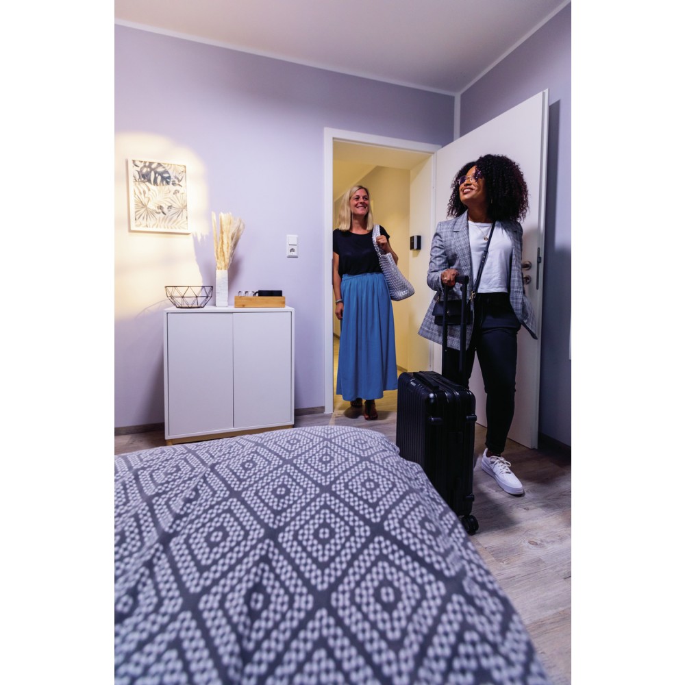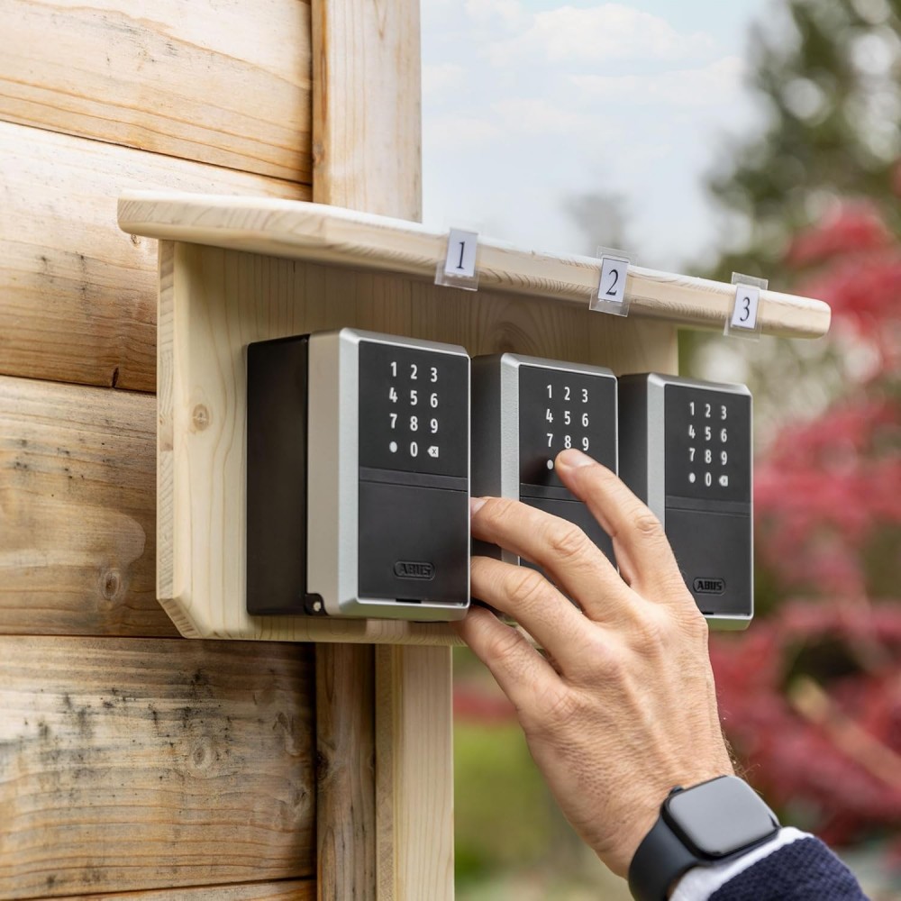 Le KeyGarage ONE 787 d'ABUS (successeur du Smart KeyGarage) est la solution idéale pour automatiser la remise des clés sans présence physique. Fixée au mur, cette boîte à clés connectée permet un partage d'accès fluide et sécurisé pour les locataires de vacances, le personnel d'entretien ou les prestataires de services.