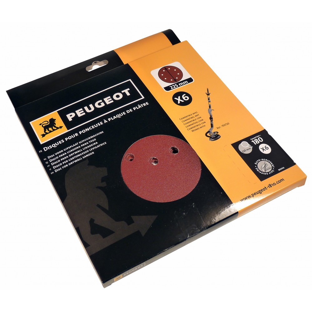 Lot de 6 abrasifs ponceuse diamètre 225mm - 8 trous - grain 180 PEUGEOT