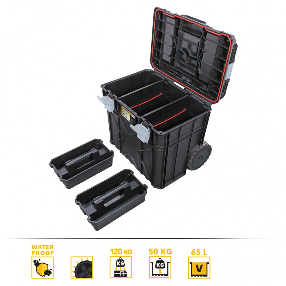- Mobilité tout-terrain avec le module 65L équipé d'une poignée télescopique et des roues antidérapantes