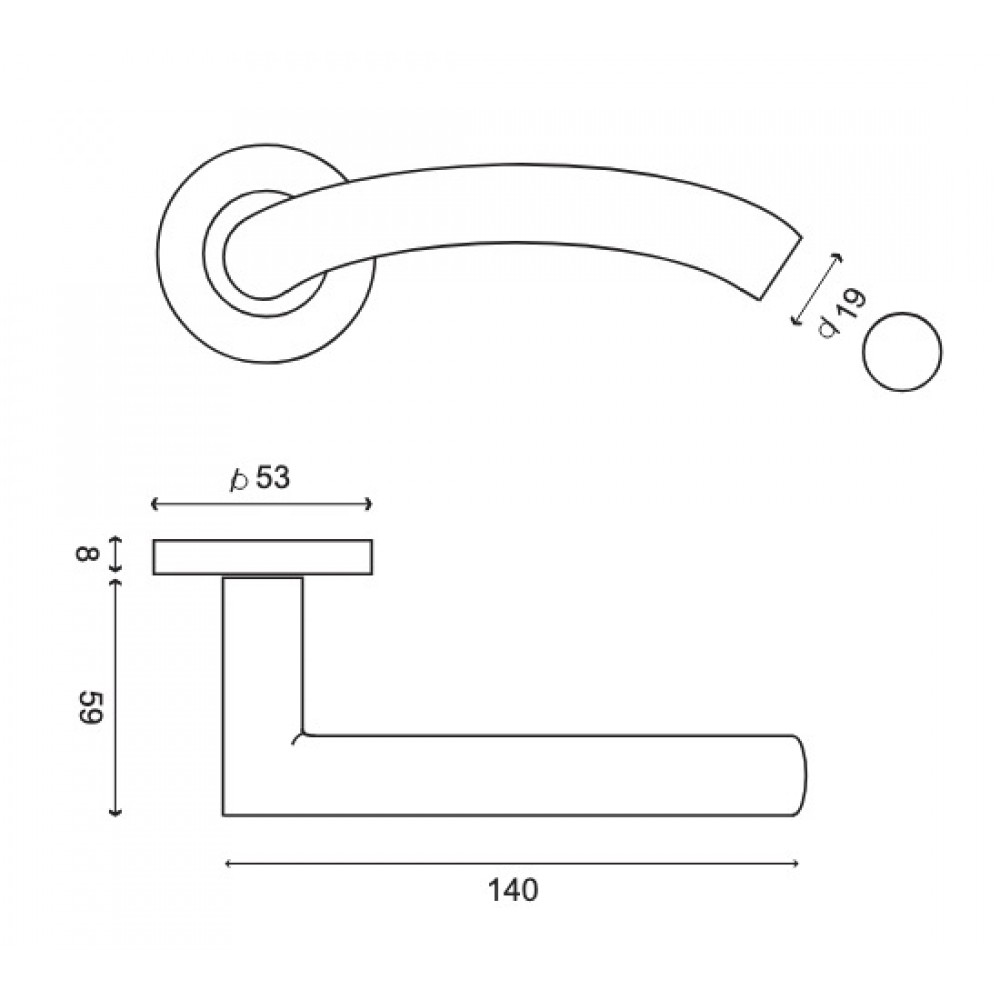 Livrée avec carré de 7 mm pour porte d'épaisseur 40 mm et sans rosace de fonction.