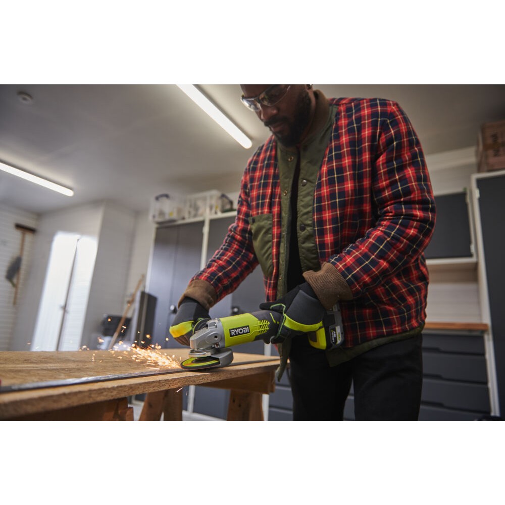 Sous le capot, le moteur puissant assure une rotation constante du disque de 115 mm de diamètre à une vitesse à vide de 7 500 tr/min, garantissant une progression de travail rapide et nette. Pour un confort d'utilisation optimal, RYOBI a intégré une poignée auxiliaire bi-matière GripZone™ réglable sur 3 positions, ce qui permet de s'adapter parfaitement à la morphologie de l'utilisateur et au type de tâche à accomplir. La sécurité est également au cœur de la conception avec un interrupteur double sécurité qui prévient tout démarrage accidentel, protégeant ainsi l'opérateur en toute circonstance.