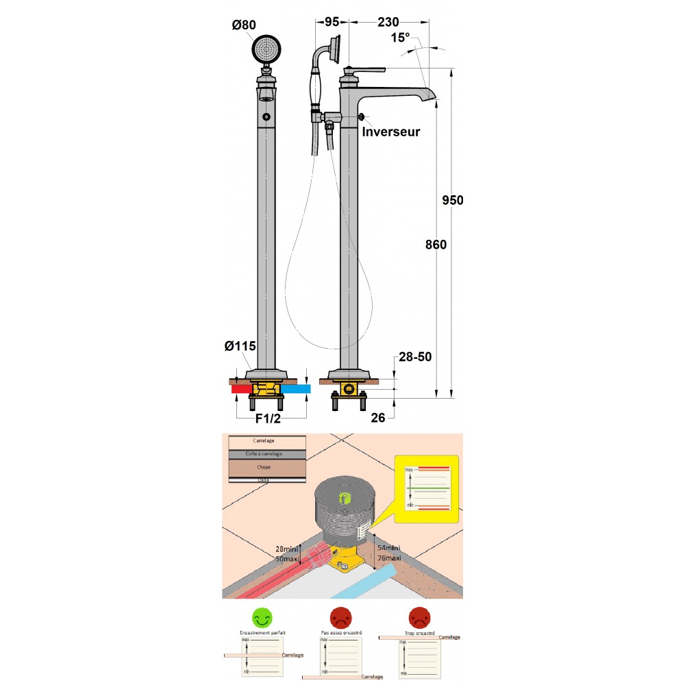 L'inclusion du corps d'encastrement est un atout majeur. Il permet de réaliser les raccordements hydrauliques sous la chape en toute sécurité avant la pose du revêtement final, assurant une rigidité parfaite à la colonne de 95 cm une fois installée.