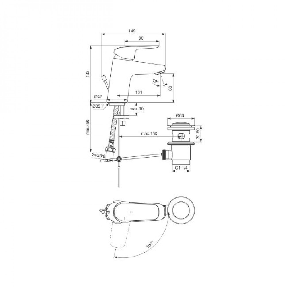 | Hauteur sous bec | 68 mm |