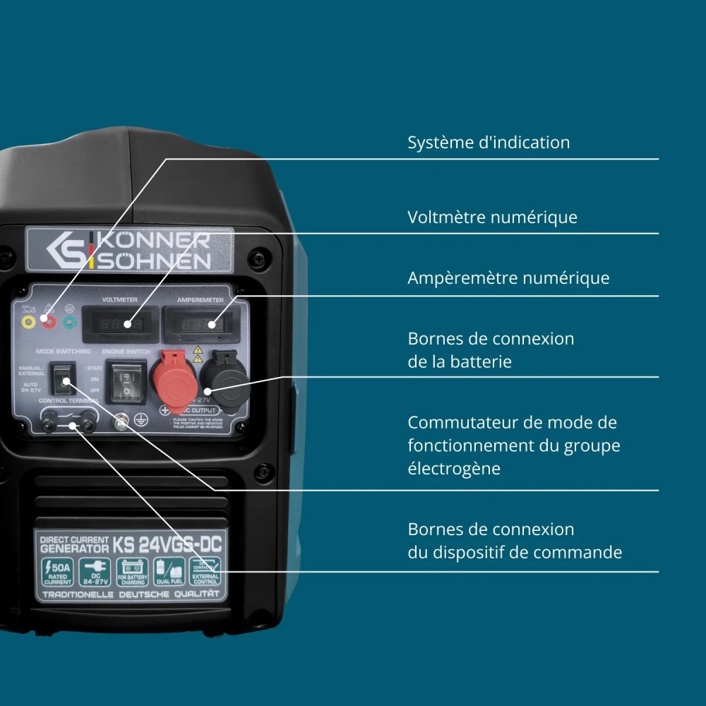 Le groupe électrogène CC KS 24VGS-DC de la marque allemande Könner & Söhnen® représente une avancée technologique majeure pour la gestion de l'énergie autonome. Contrairement aux groupes électrogènes classiques en courant alternatif (CA), ce modèle génère directement un courant continu (CC) de 24-27 V, ce qui en fait la solution idéale pour charger des parcs de batteries sans aucune perte liée à la conversion de tension. Cette spécificité technique garantit une efficacité maximale et une économie de carburant substantielle, positionnant cet appareil comme un pilier central pour les installations solaires, les systèmes de télécoms, de surveillance ou pour les véhicules techniques en stationnement prolongé.