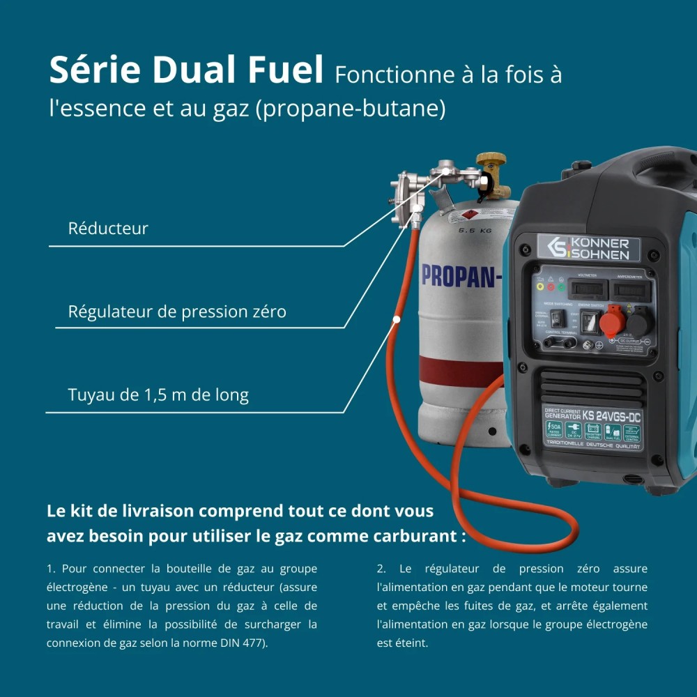 Groupe électrogène CC double carburant - 1,4 kW - 24/27V - KS 24VGS-DC KONNER & SOHNEN