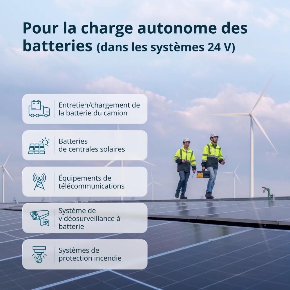 - Chargeur spécifique 24-27V délivrant jusqu'à 50A sans perte de conversion