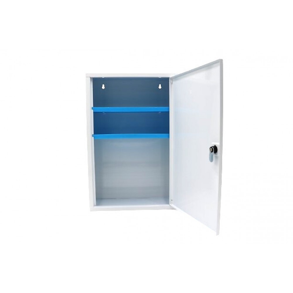 - Aménagement intérieur : équipée de 2 étagères en plastique, permettant de compartimenter efficacement les pansements, désinfectants et médicaments.