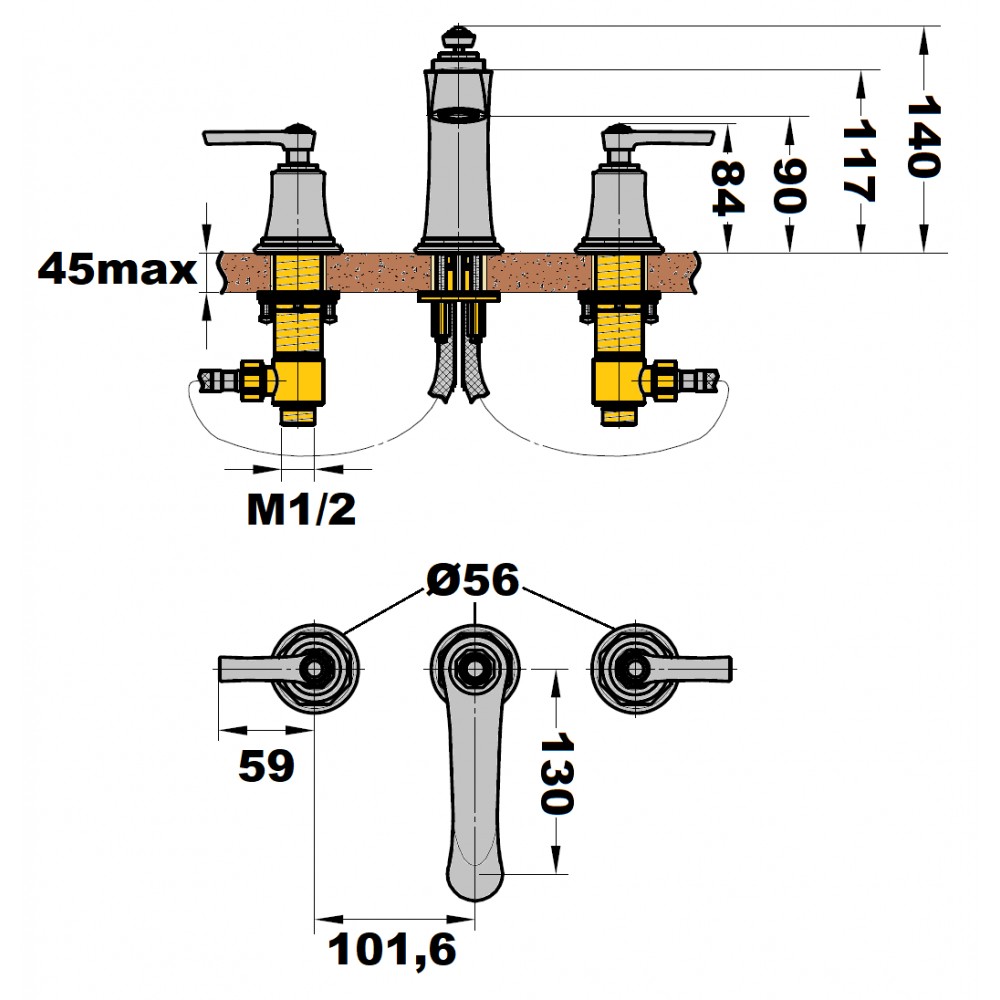 - Robinet lavabo 3 trous