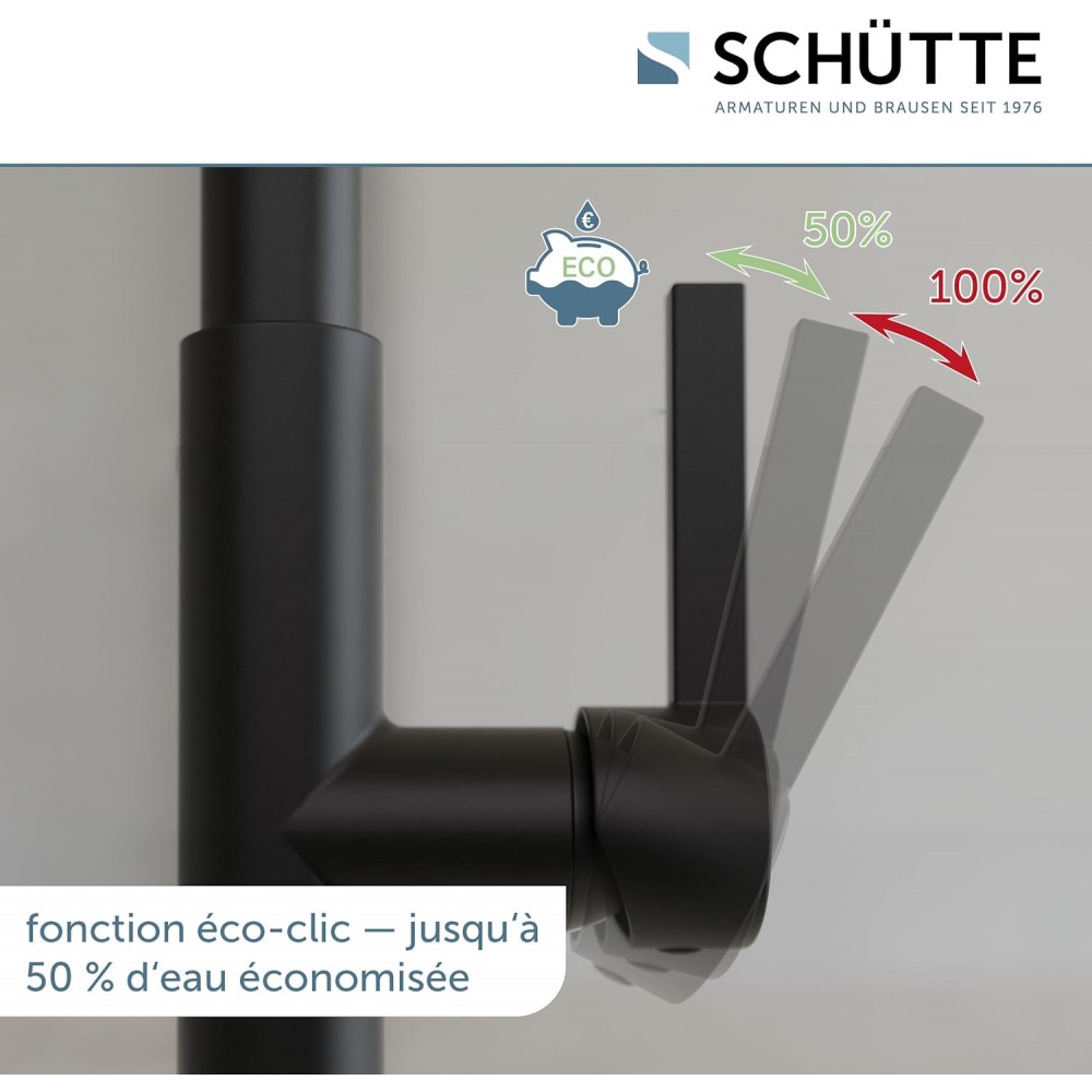 - Économie d'eau (éco-clic) : Le levier dispose d'une butée de résistance permettant de réduire le débit jusqu'à 50%, idéal pour les tâches quotidiennes sans gaspillage.
