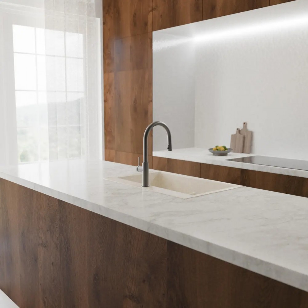 Le graphite mat apporte une profondeur visuelle à votre plan de travail. Sa surface est traitée pour résister aux rayures et conserver son aspect velouté malgré un usage quotidien intensif.