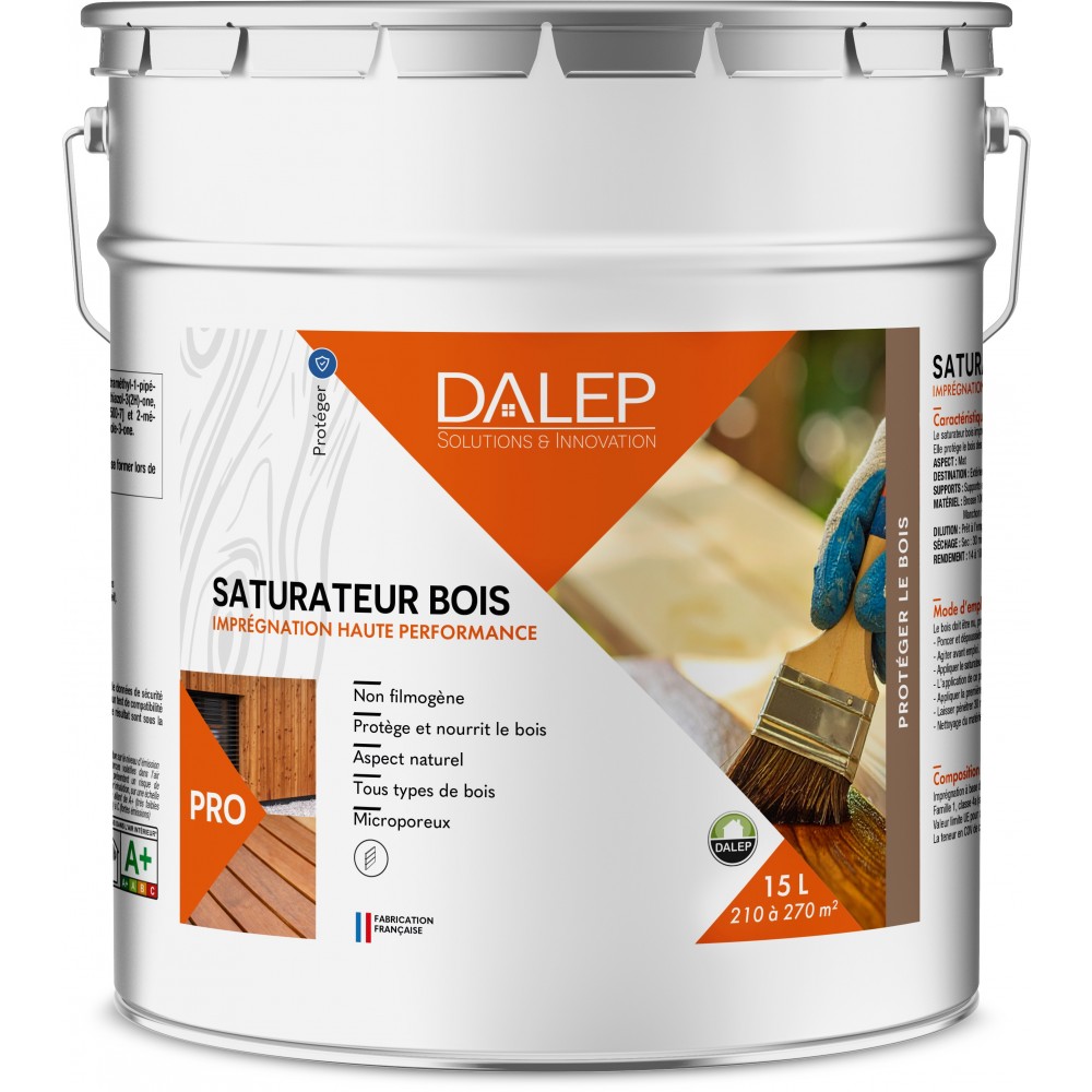 Le saturateur bois DALEP est une solution d'imprégnation non filmogène conçue pour nourrir et protéger le bois en profondeur tout en préservant son aspect mat et son grain naturel. Grâce à sa technologie à base d'alkyde uréthane en phase aqueuse, il offre une barrière efficace contre les UV et les intempéries sans s'écailler.