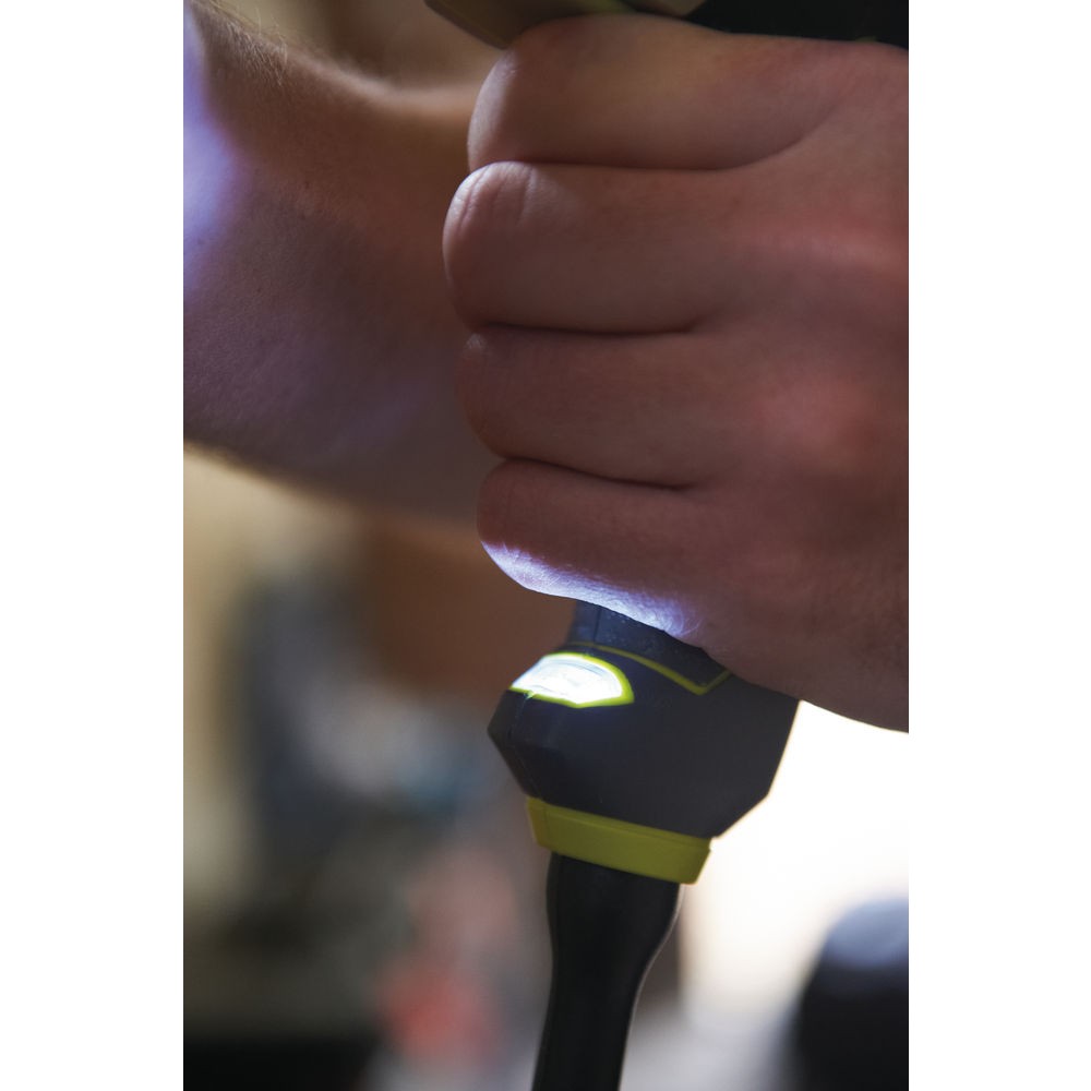 La perceuse à percussion RPD680 se distingue par sa polyvalence sur tous les matériaux. Dotée d'un mandrin auto-serrant de 13 mm manœuvrable d'une seule main grâce au blocage d'arbre automatique, elle permet de changer de foret instantanément. Sa mécanique de précision délivre une cadence de frappe impressionnante allant jusqu'à 51 000 cps/min, facilitant le perçage dans la pierre jusqu'à 16 mm et le béton. Pour les travaux délicats dans le bois (jusqu'à 32 mm) ou le métal, le stop de frappe désactive la percussion, tandis que le présélecteur et le variateur de vitesse à la gâchette assurent un contrôle total de la rotation (0-3 000 tr/min). La sécurité et le confort sont renforcés par l'indicateur de tension Livetool Indicator™ et la poignée micro-alvéolée GripZone+™ qui offre une maîtrise ferme et agréable.