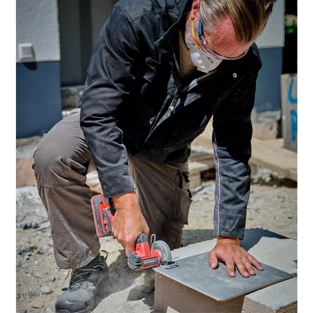 Einhell a intégré des dispositifs de sécurité de haut niveau pour protéger l'artisan et la machine. Le frein moteur assure un arrêt quasi instantané du disque dès que la gâchette est relâchée, tandis que le dispositif antiredémarrage empêche toute mise en route accidentelle lors du changement de batterie. Pour garantir la longévité des composants internes, des grilles anti-poussière amovibles protègent le moteur des projections métalliques et des poussières de chantier. Ces grilles, combinées à un flux d'air intelligent, évitent la surchauffe et facilitent l'entretien régulier de la machine. Une lampe LED haute performance vient compléter l'ensemble pour offrir une visibilité parfaite sur le trait de coupe, même dans les zones les plus sombres.