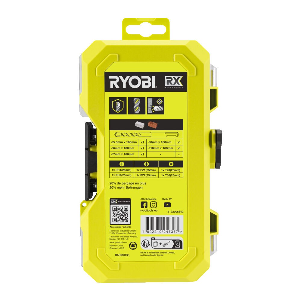 Coffret 5 forets 2 taillants SDS+ RYOBI® RX + 6 embouts de vissage - RARXSDS5 RYOBI