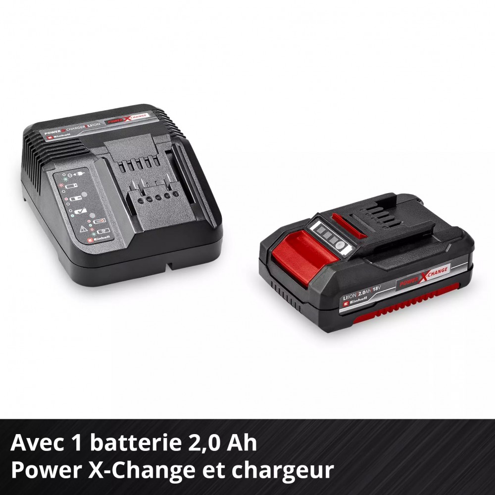 Vendue avec une batterie 2,0 Ah, un chargeur et un coffret de 64 accessoires