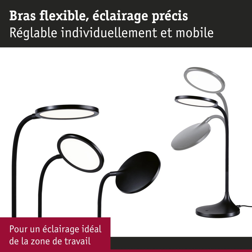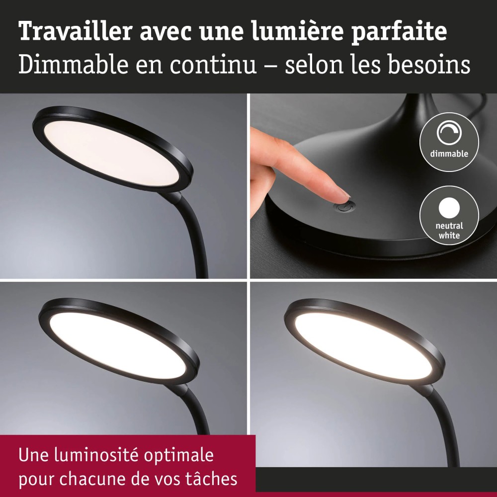 Lampe de bureau LED 15W 4000K 1200 lm Gradable - Noir mat - Mejan PAULMANN