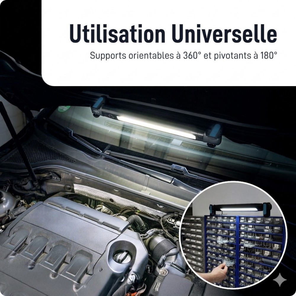 Grâce à ses multiples options de fixation (aimants et crochets), la ML3000RD libère totalement vos mains pour les interventions complexes sous un pont élévateur, lors d'inspections moteur ou sur des tableaux électriques.
