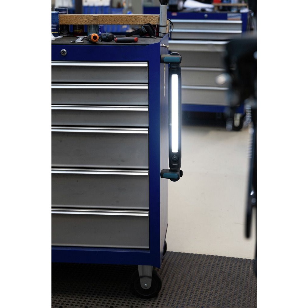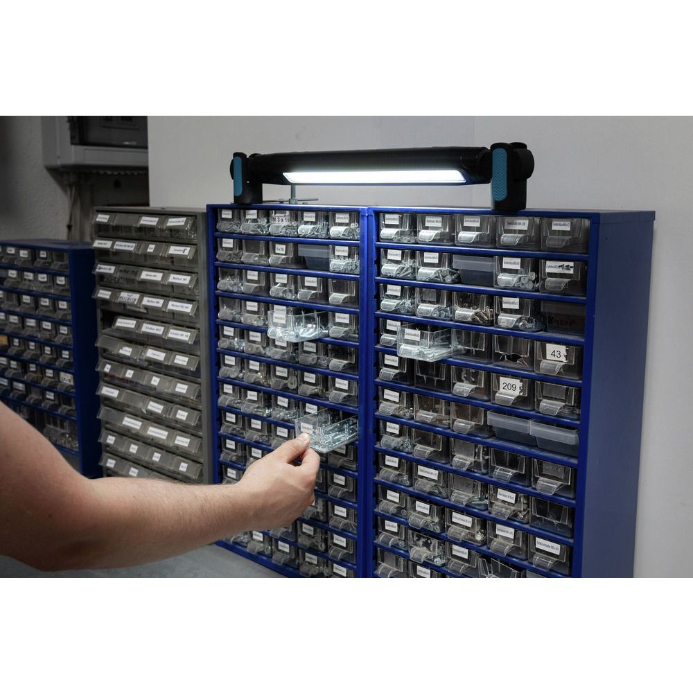 Le design fin et élancé permet d'éclairer des zones difficiles d'accès tout en offrant la robustesse nécessaire aux chantiers. L'indicateur de charge intégré vous permet d'anticiper la recharge et d'éviter les interruptions de travail imprévues.
