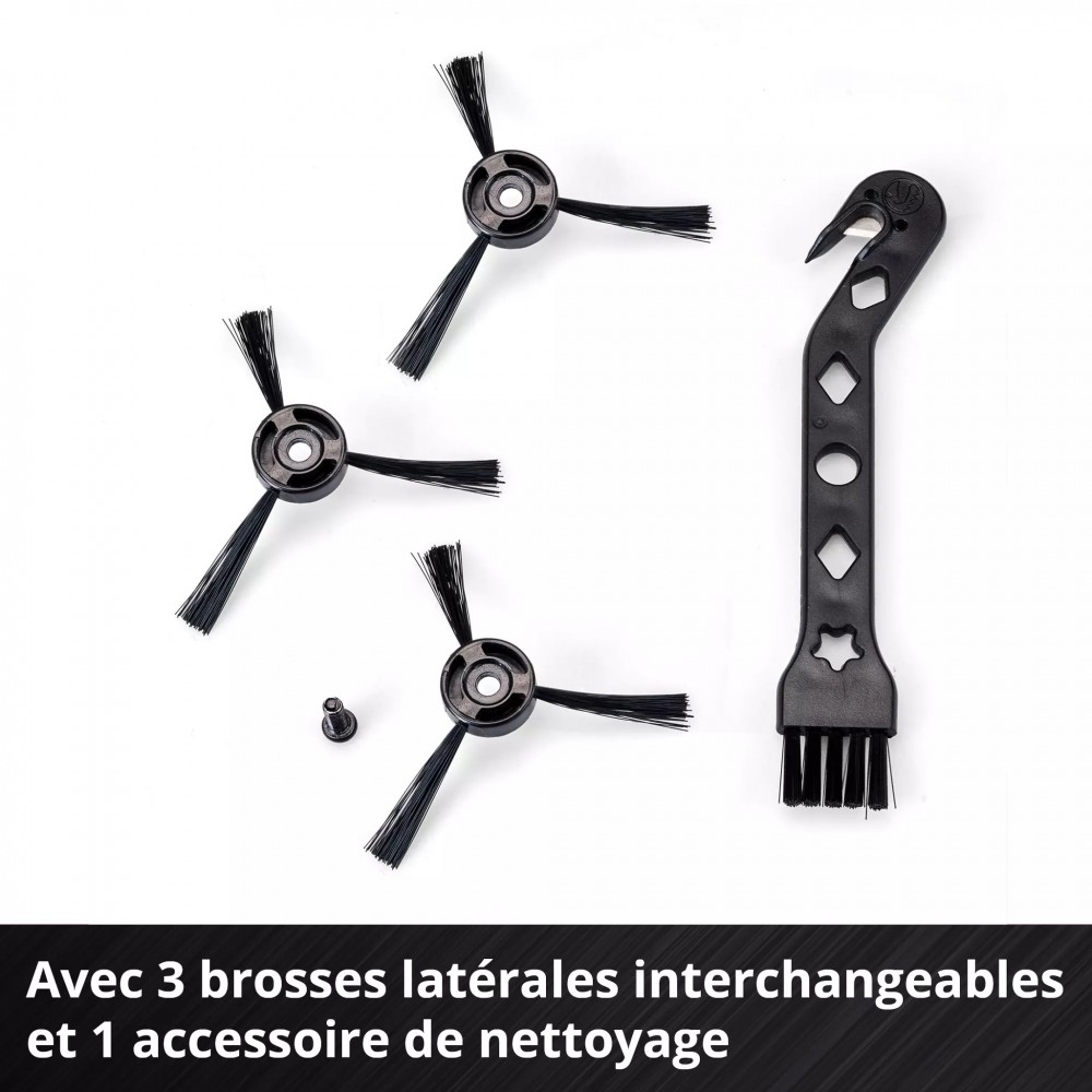 Vendu avec 3 brosses latérales, un accessoire pour nettoyer la brosse cylindrique et sans batterie ni chargeur