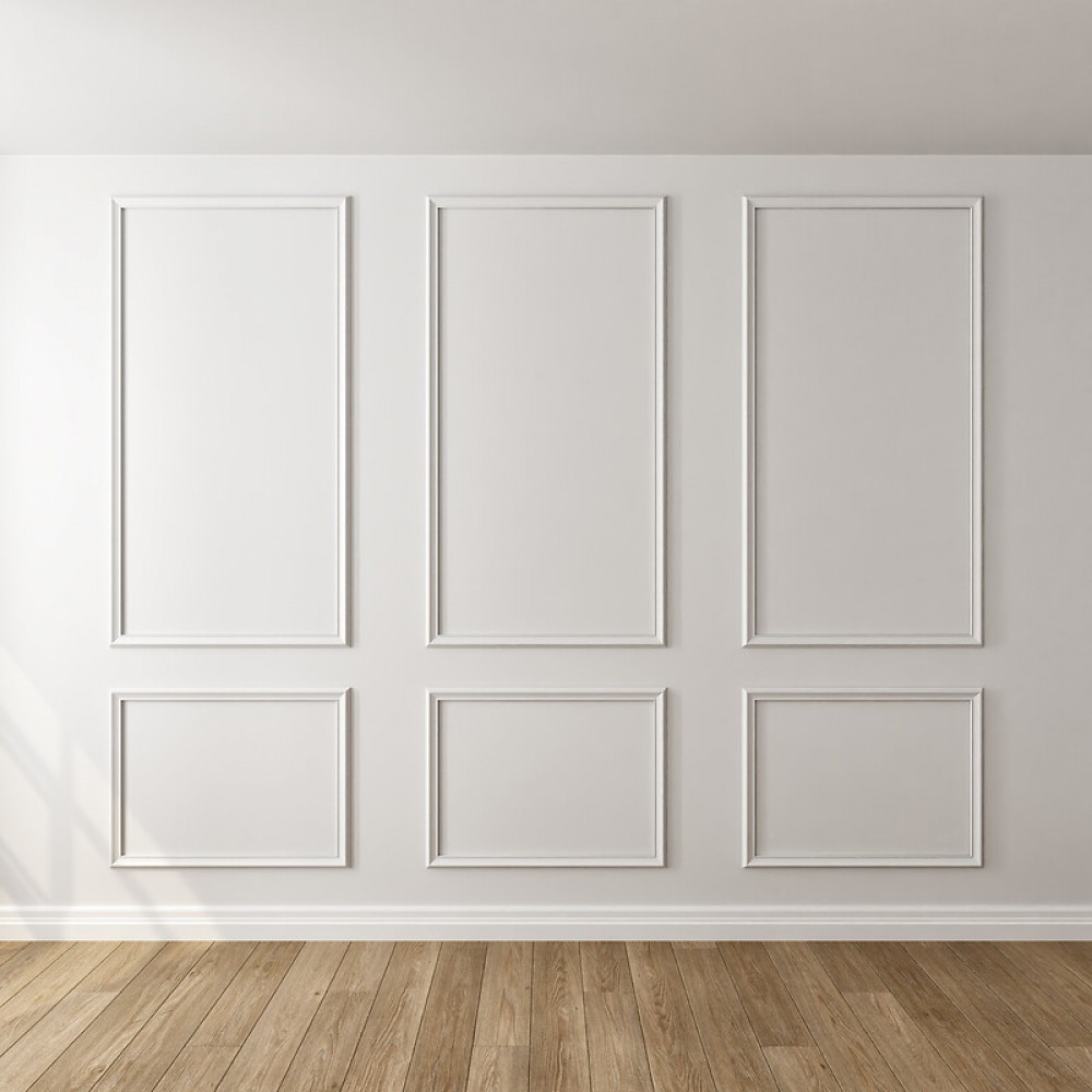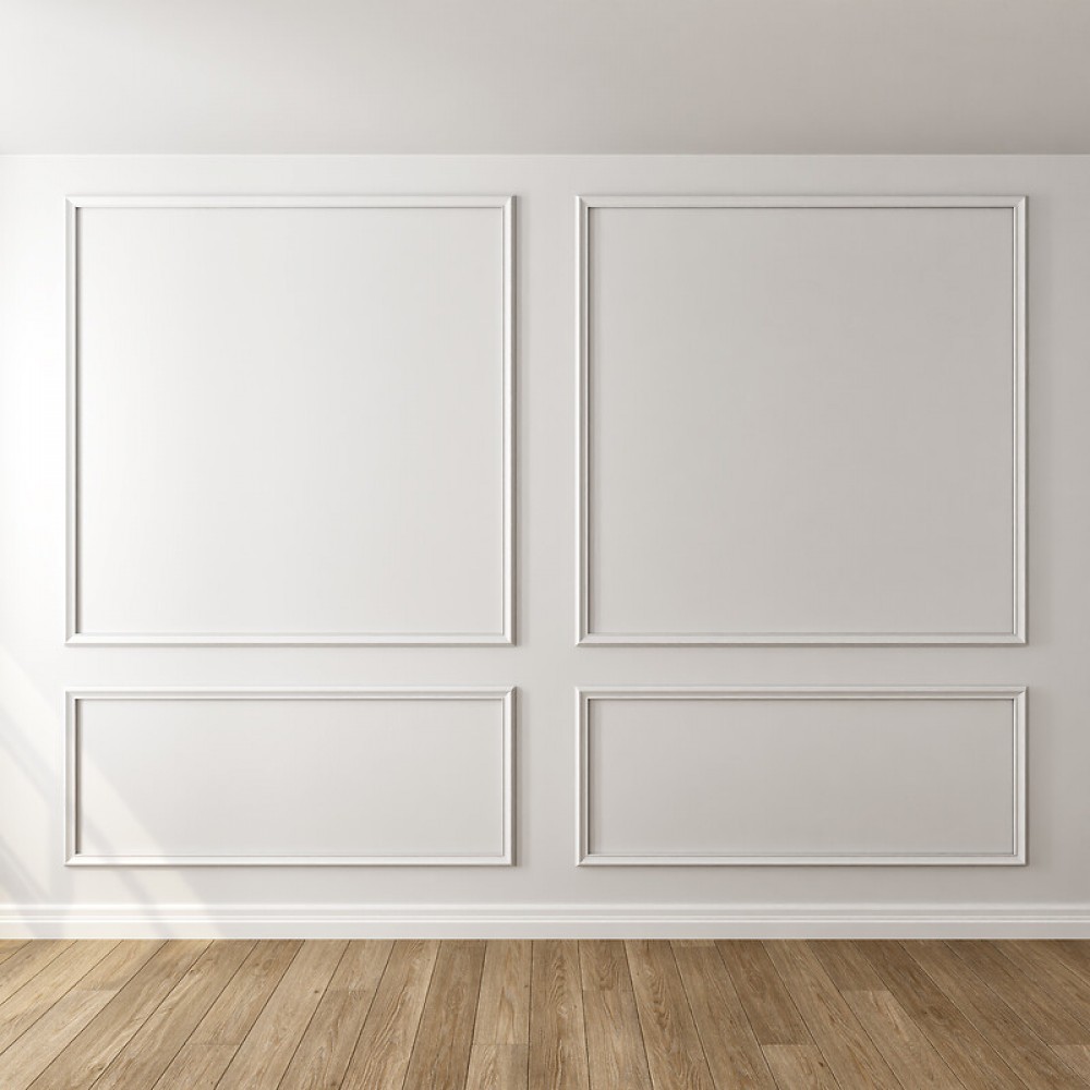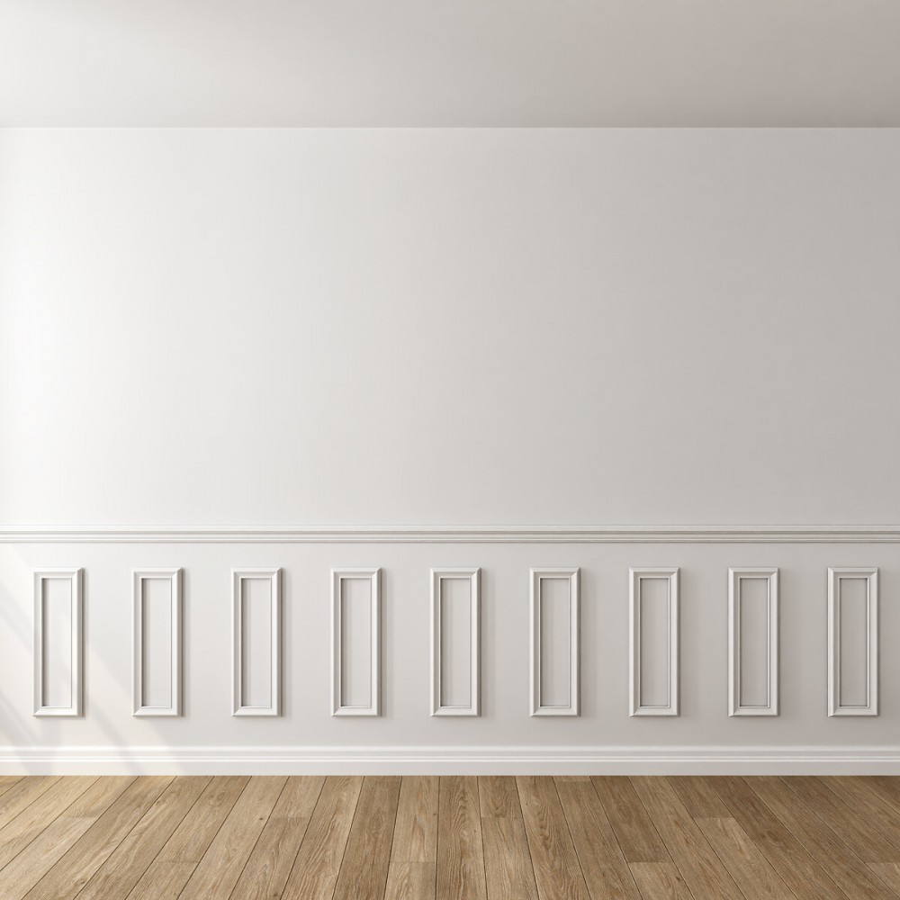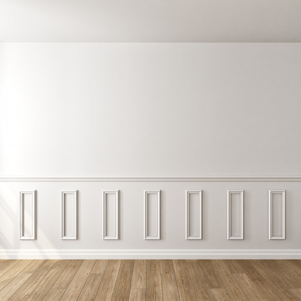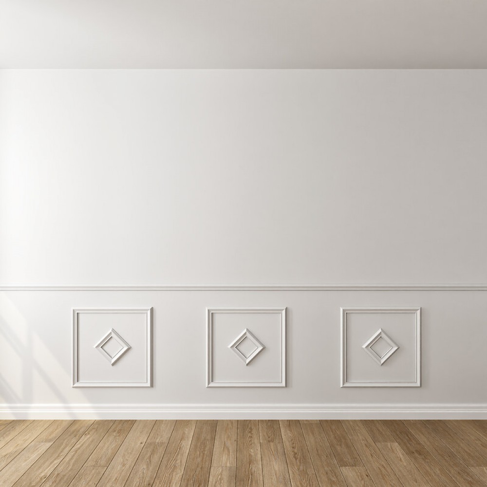 - Préparation : appliquez une sous-couche (impression) sur les moulures et le support avant le collage. Le mur doit être propre, sec et sans papier peint.