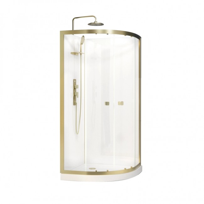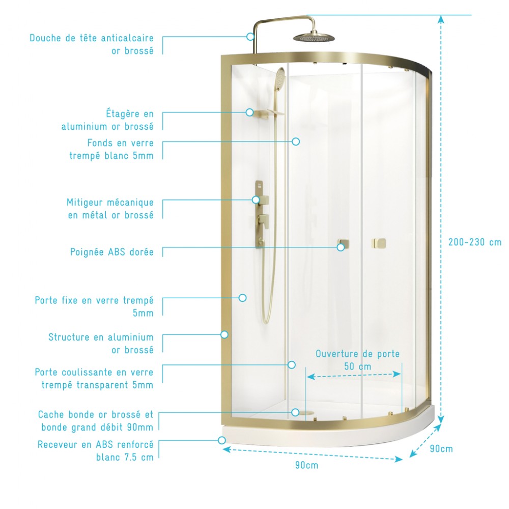 Cabine de douche 1/4 rond 90 cm dorée à porte coulissante - Goldy AURLANE