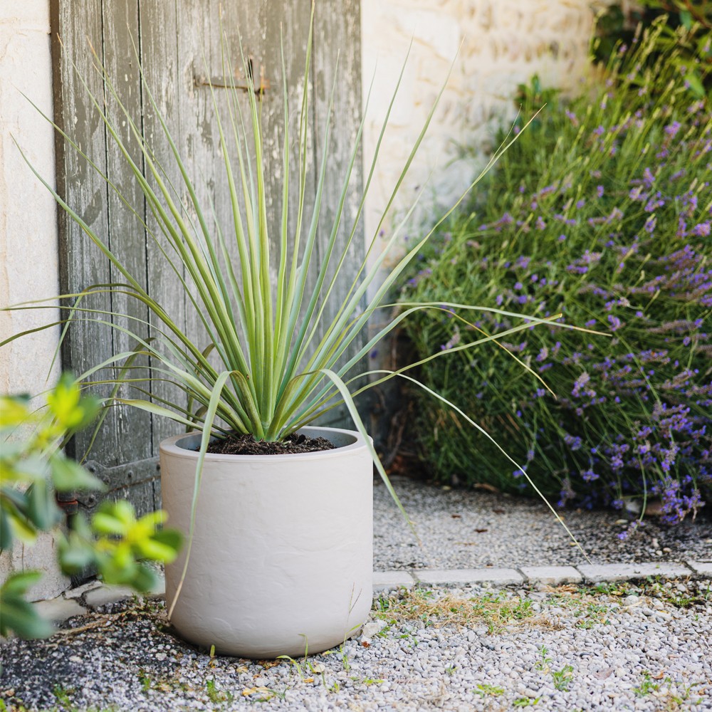 D'un point de vue technique, ce pot rond affiche une contenance précise de 32,5 L, parfaite pour des plantes de taille moyenne. Sa matière légère permet une manipulation aisée, facilitant le rempotage et les changements de disposition au gré de vos envies décoratives. Son fini "effet pierre" minéral crée une atmosphère zen et élégante, se mariant parfaitement avec les autres contenants de la gamme Volcania pour une décoration harmonieuse et structurée de vos espaces de vie intérieurs et extérieurs.