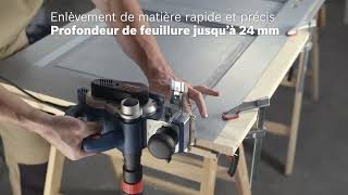 | Équipement standard et emballage | Fer réversible supplémentaire en acier au carbure HM. Butée parallèle 90°. Butée de profondeur de feuillure. Coffret. |