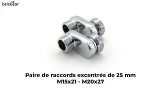 Cette paire de raccords excentrés de 25 mm se raccorde pare filetage mâle 15x21 et mâle 20x27. Les raccords excentrés sont destinés à l'adaptation d'une ancienne canalisation à un robinet standard d'entraxe 150 mm.