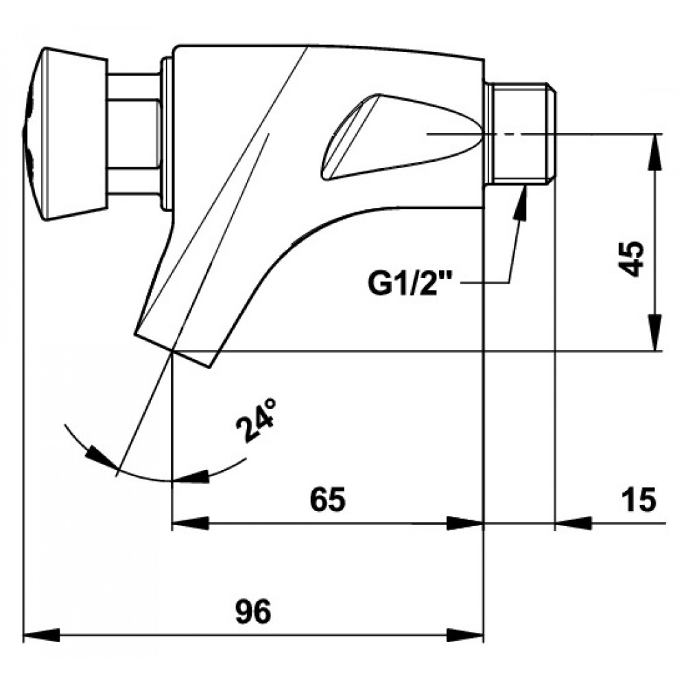 Robinet poussoir mural temporisé pour lavabo avec bouton en laiton chromé non tournant.
