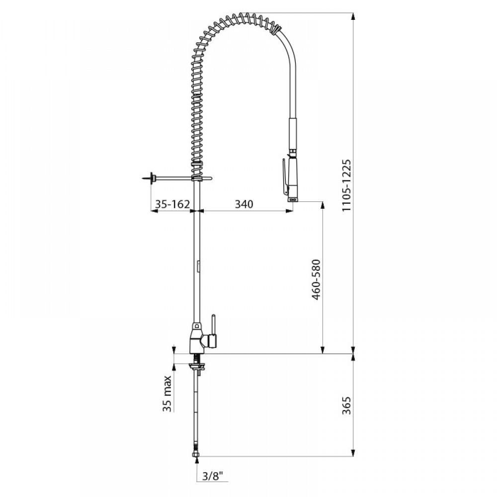 Le flexible armé blanc de 0,95 m, qualité alimentaire, assure une grande liberté de mouvement et un excellent confort d’utilisation. La structure repose sur une colonne 3/4" en inox, un collier mural réglable pour stabiliser l’ensemble, et un ressort-guide inox qui permet un retour fluide de la douchette et une manipulation ergonomique.