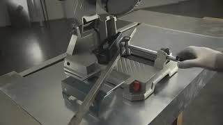 Pour une manipulation facile et des coupes d'onglet précises, la scie est dotée d'un réglage d'angle ajustable sans outil. La table porte-pièce en fonte d'aluminium renforcée offre une grande solidité, et les rallonges latérales intégrées supportent parfaitement les pièces longues. L'échelle graduée est lisible, ce qui simplifie le réglage des angles de 90° à 45°.