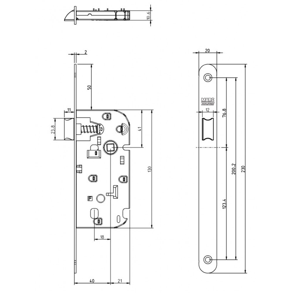 Serrure à larder 719 - axe 40 - bec de cane - blanc MARC