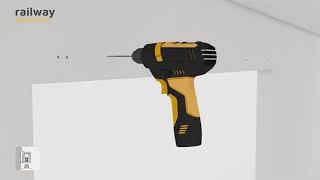 Le système est composé d'un rail supérieur, un ensemble de chariots avec amortisseurs, un profil de couvercle avant, des couvercles latéraux en plastique et 5 ancrages muraux.