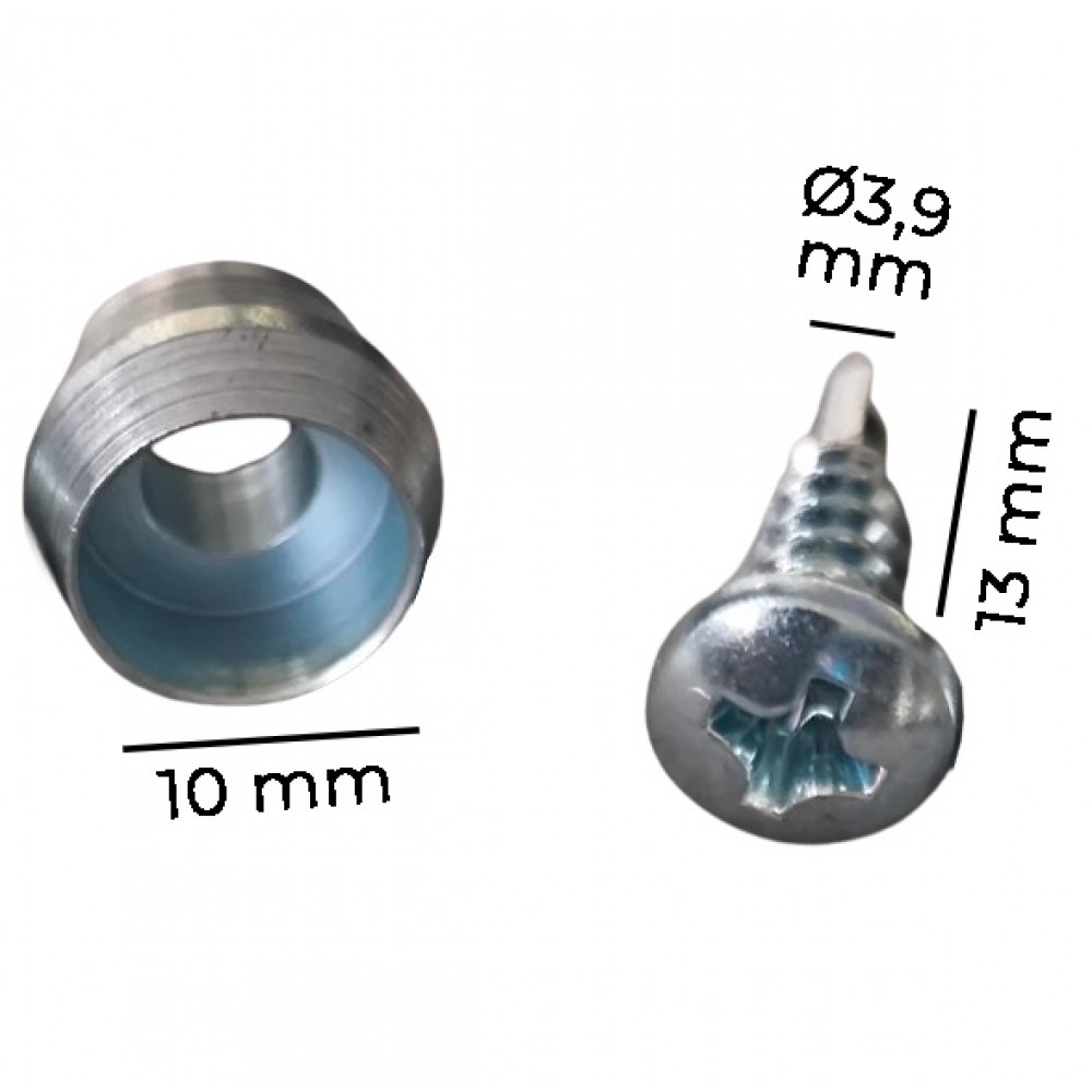 - Bague diamètre 10 mm et vis Ø 3.9mm, longueur sous tête 13mm